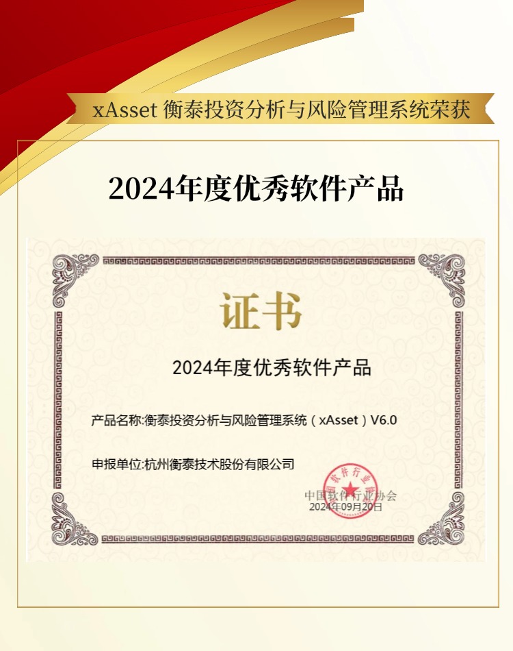 xAsset 衡泰投資分析與風險管理系統,獲評由中國軟件行業協會評審頒發的2024年度優秀軟件產品。