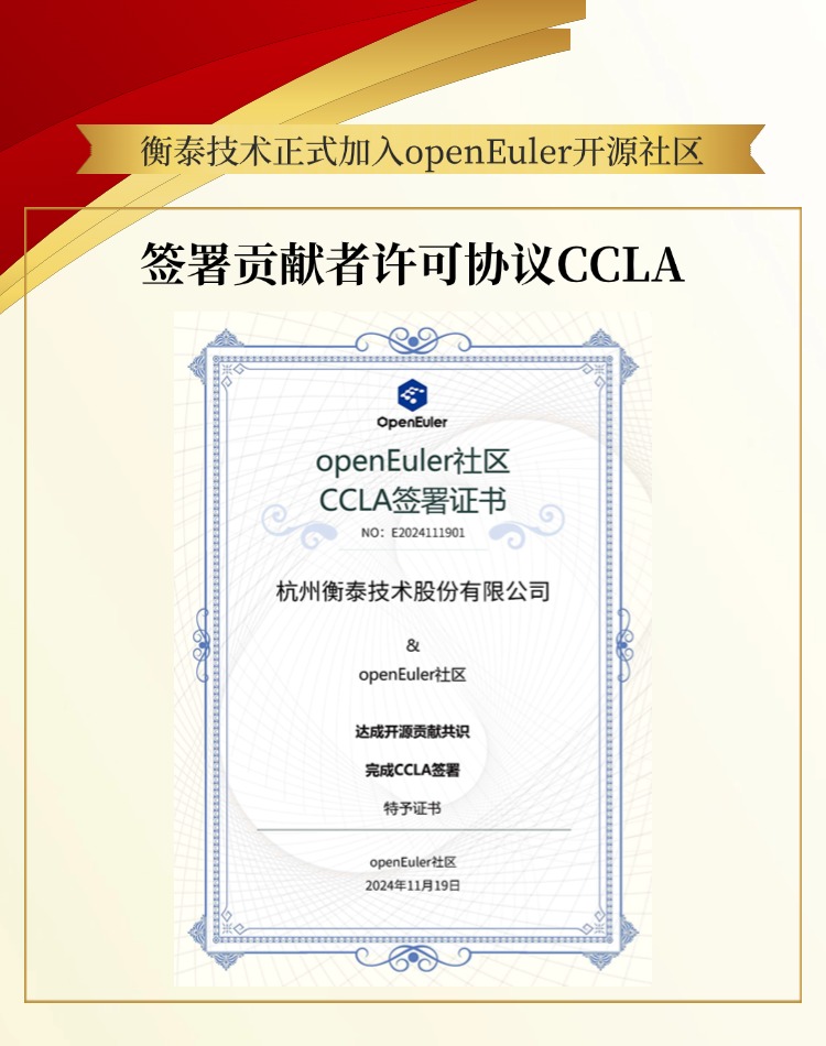 衡泰技術簽署企業貢獻許可協議(CCLA),正式加入 openEuler開源社區。