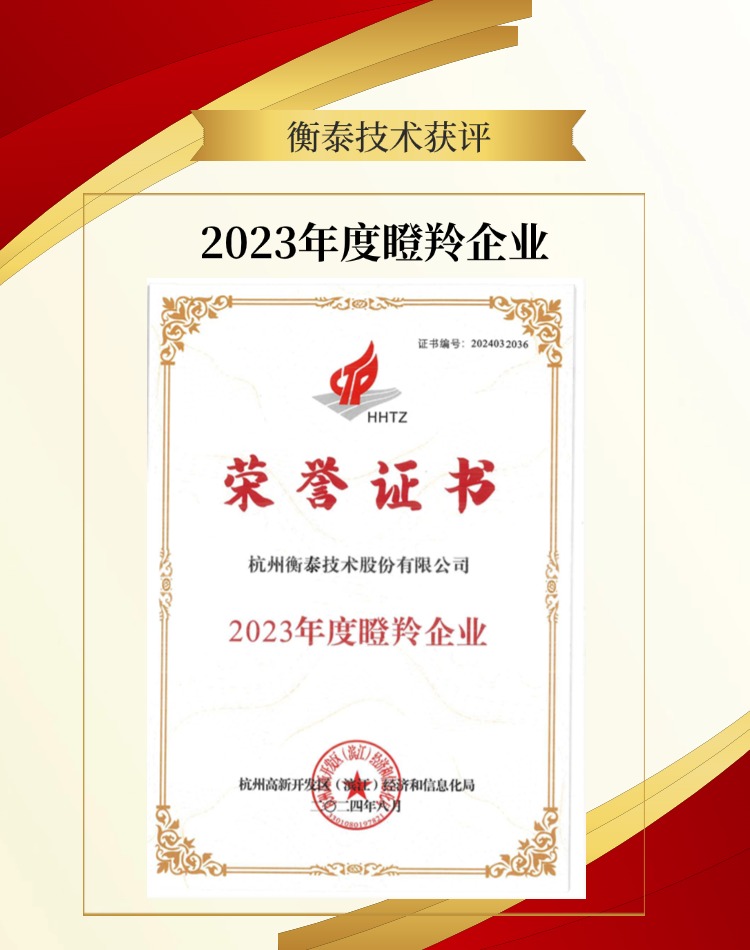 杭州市高新開發區(濱江)經濟和信息化局,發布了2023年度瞪羚企業的認定通知,衡泰技術連續多年獲評。
