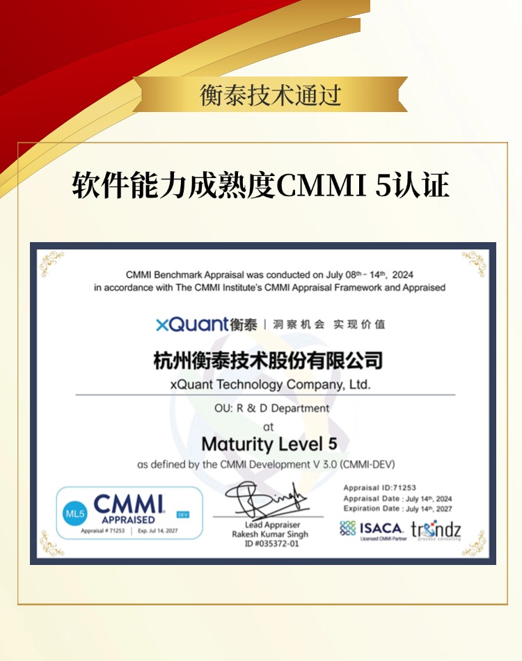 通過CMMI 5認證,是對衡泰在軟件研發過程中的組織能力、技術研發能力、項目管理能力、質量管理能力,及解決方案交付能力等方面卓越實力的認可。